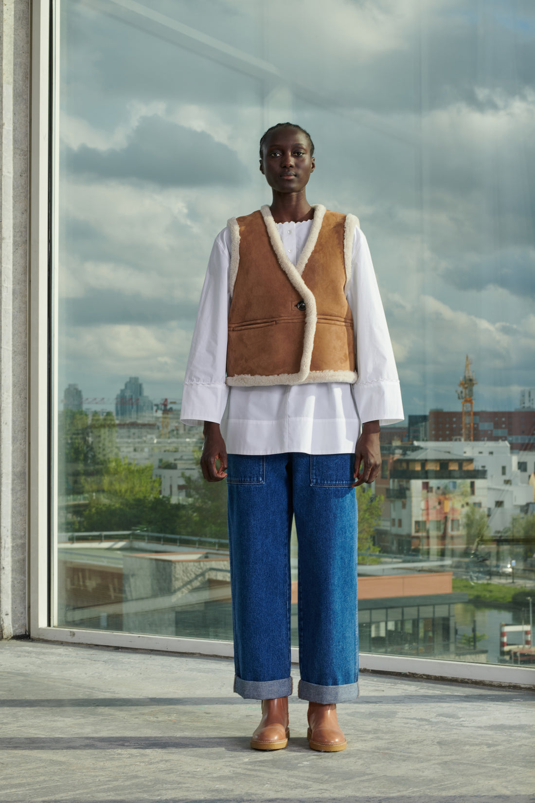 - Straight, wide slip-on boots