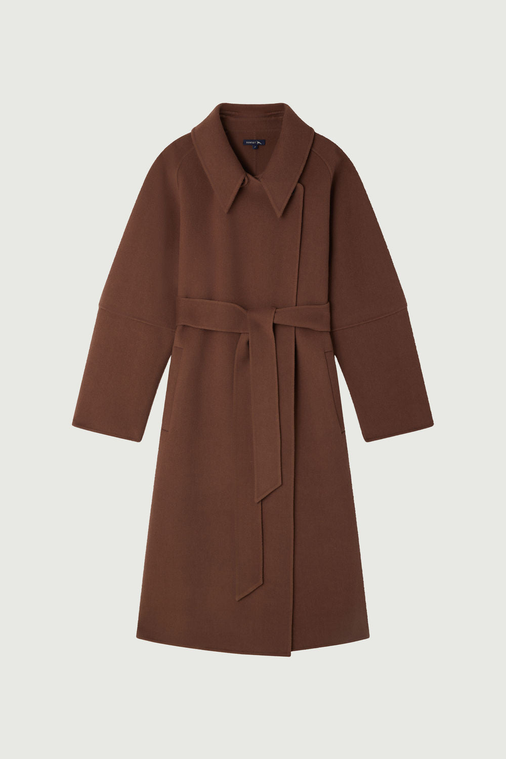 CHAMBERY is a long coat with a silhouette-hugging fit, crafted from double-faced wool in a soft rose-brown shade. It features a detachable collar with buttons and fastens with a removable belt for the perfect fit. The concealed seams accentuate the sophisticated and timeless cut.